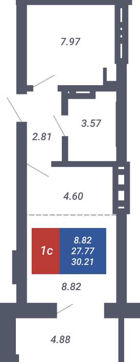 Квартира №27, Студия, 27.77м